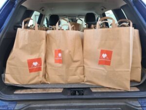 Odbiór z punktu oraz rozwożenie paczek w rożnych dzielnicach Gdańska do domów seniorów biorących udział w akcji.